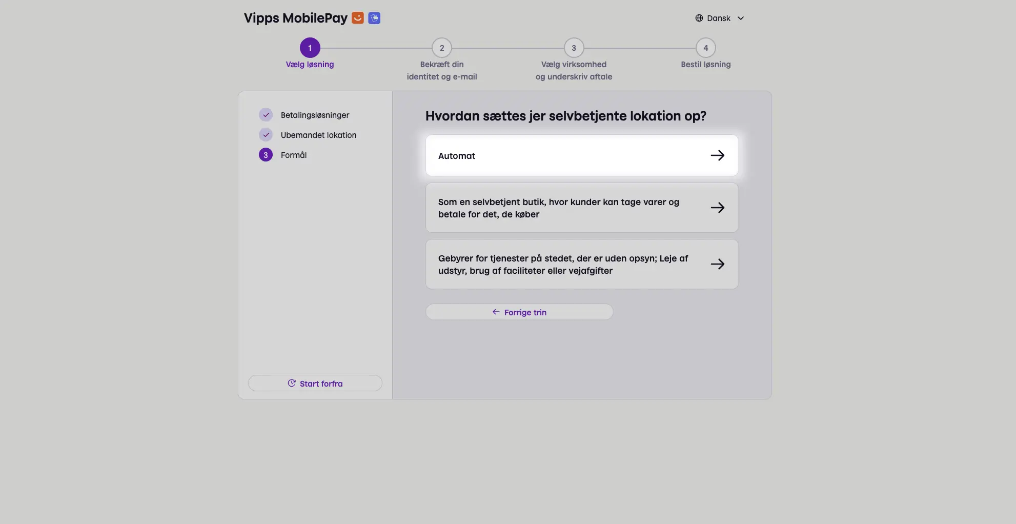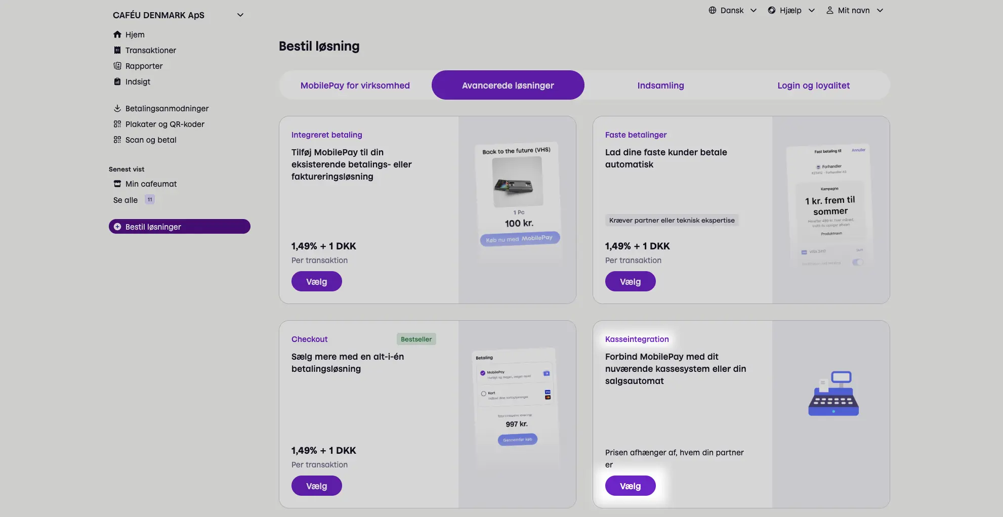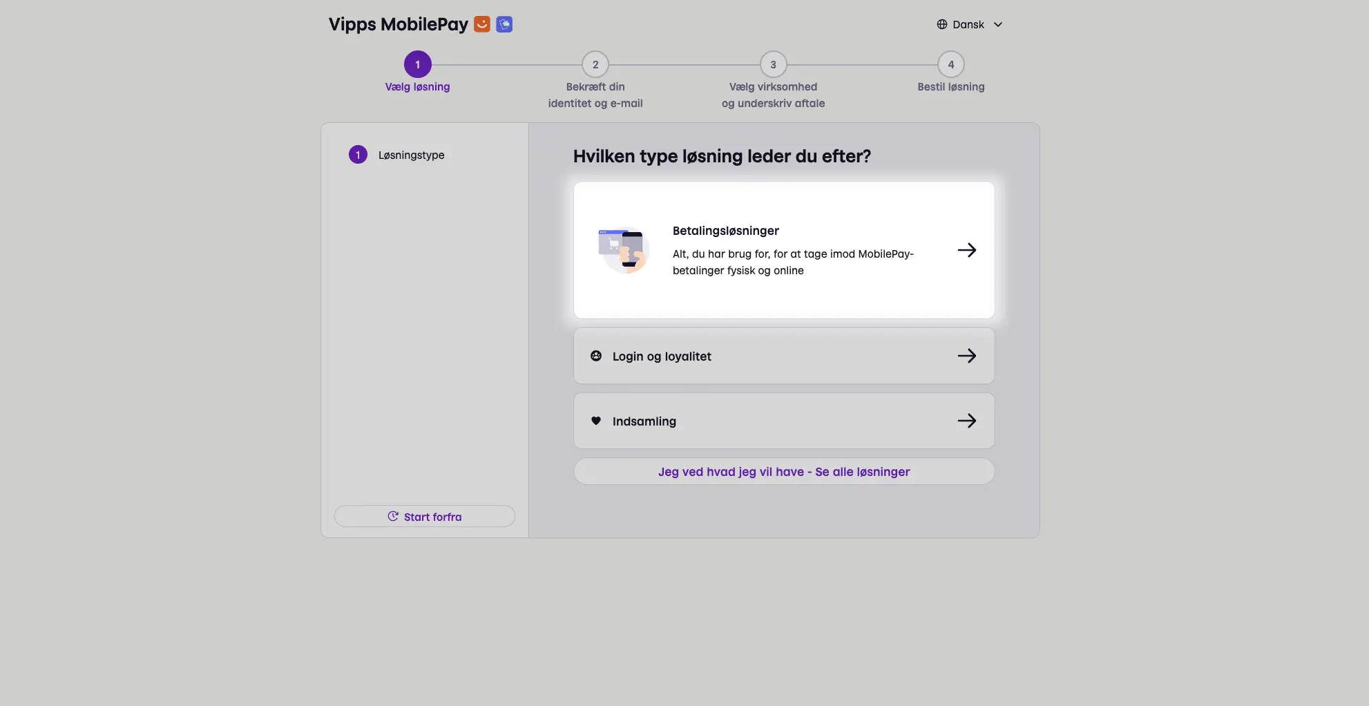 Step 2: Vælg type løsning "Betalingsløsninger"