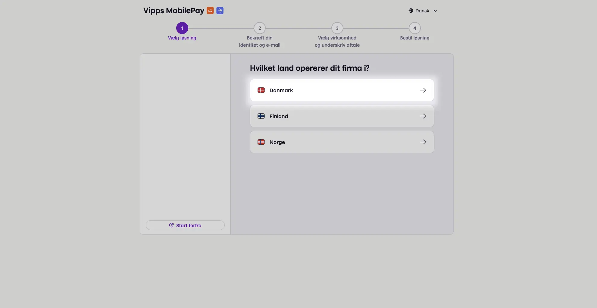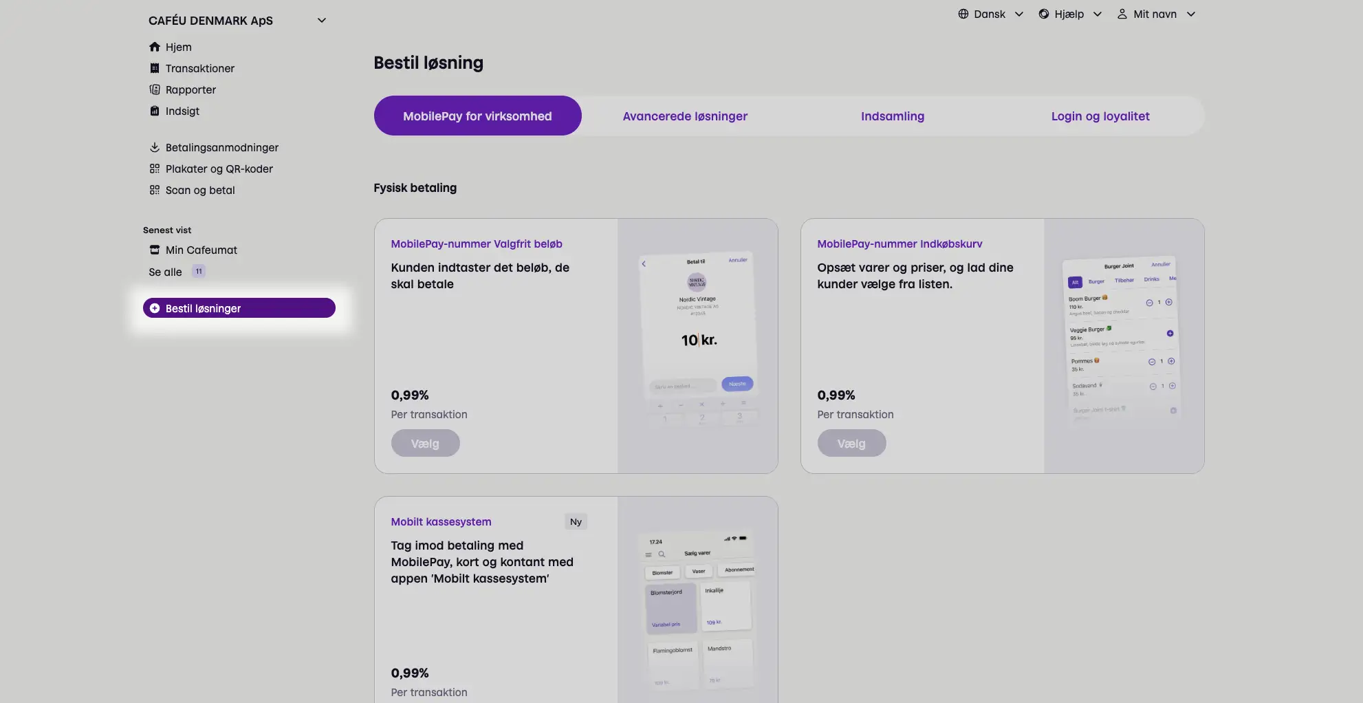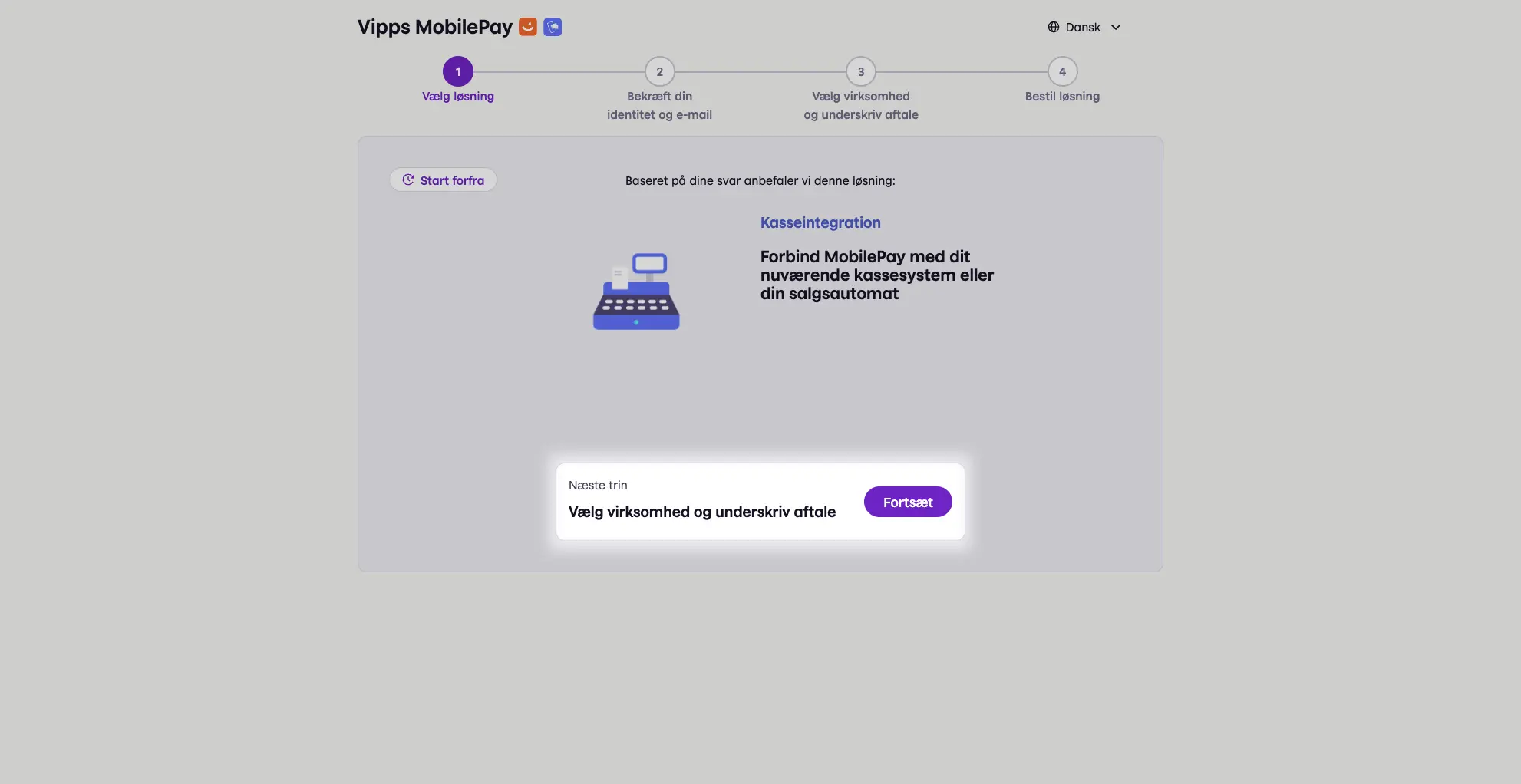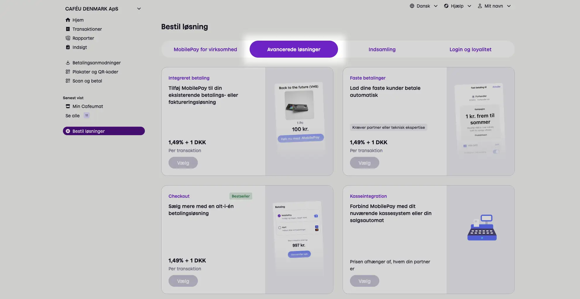 Step 2: Vælg type løsning "Betalingsløsninger"