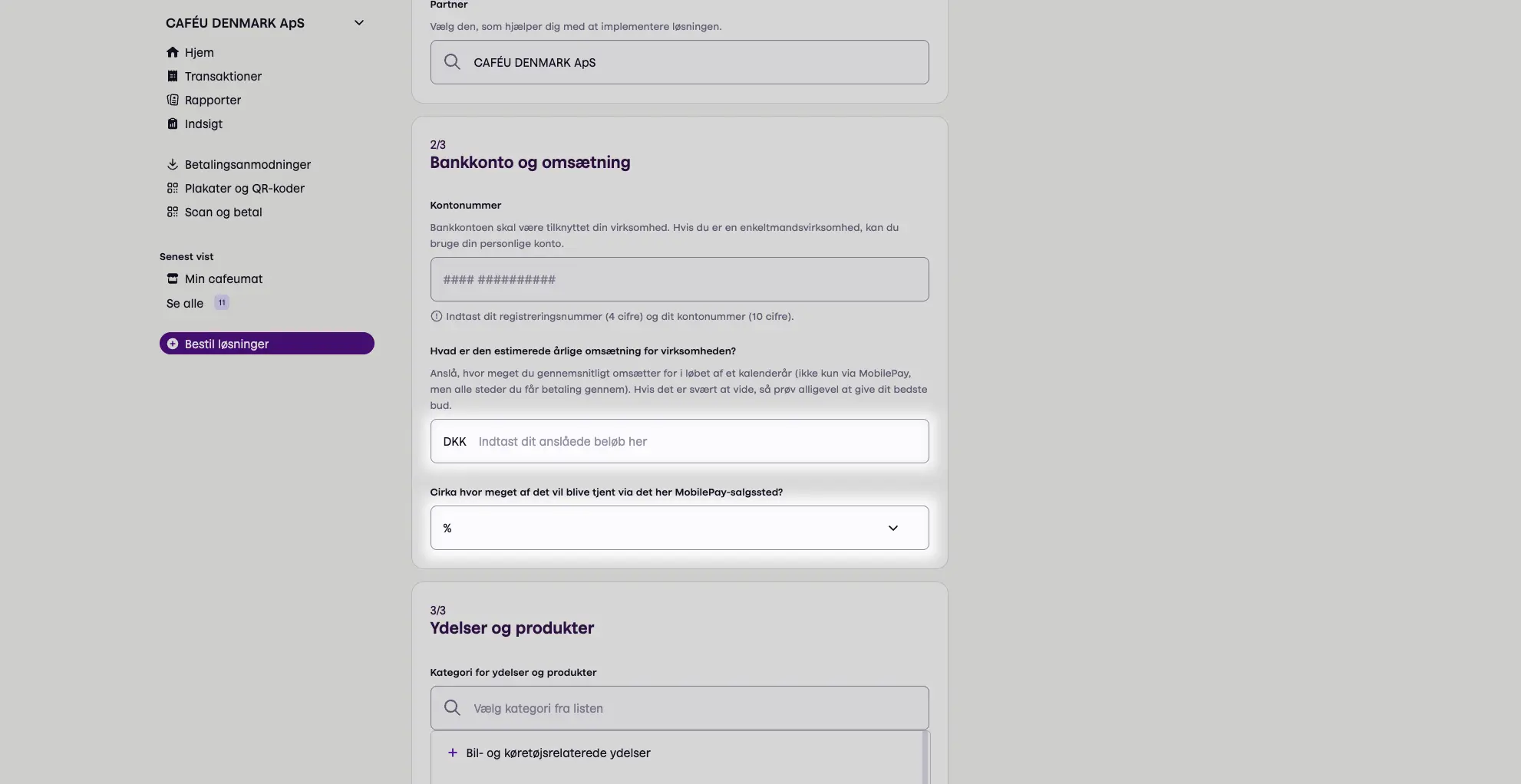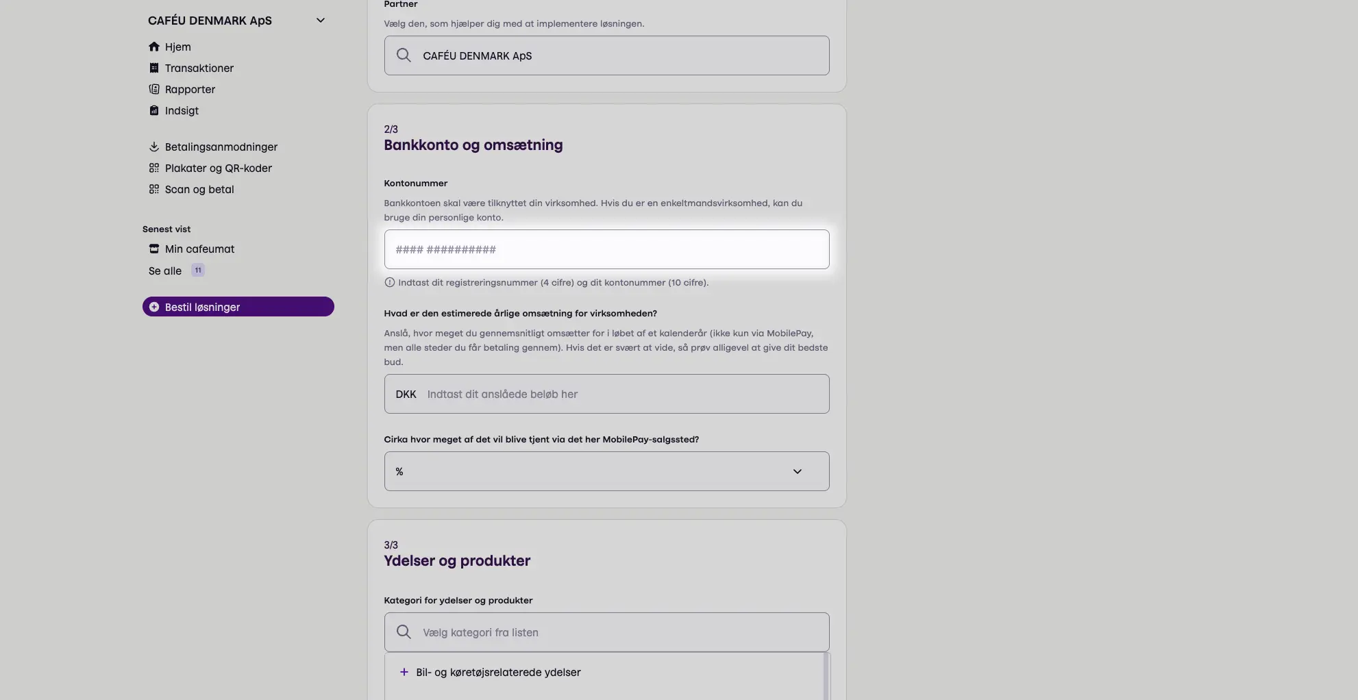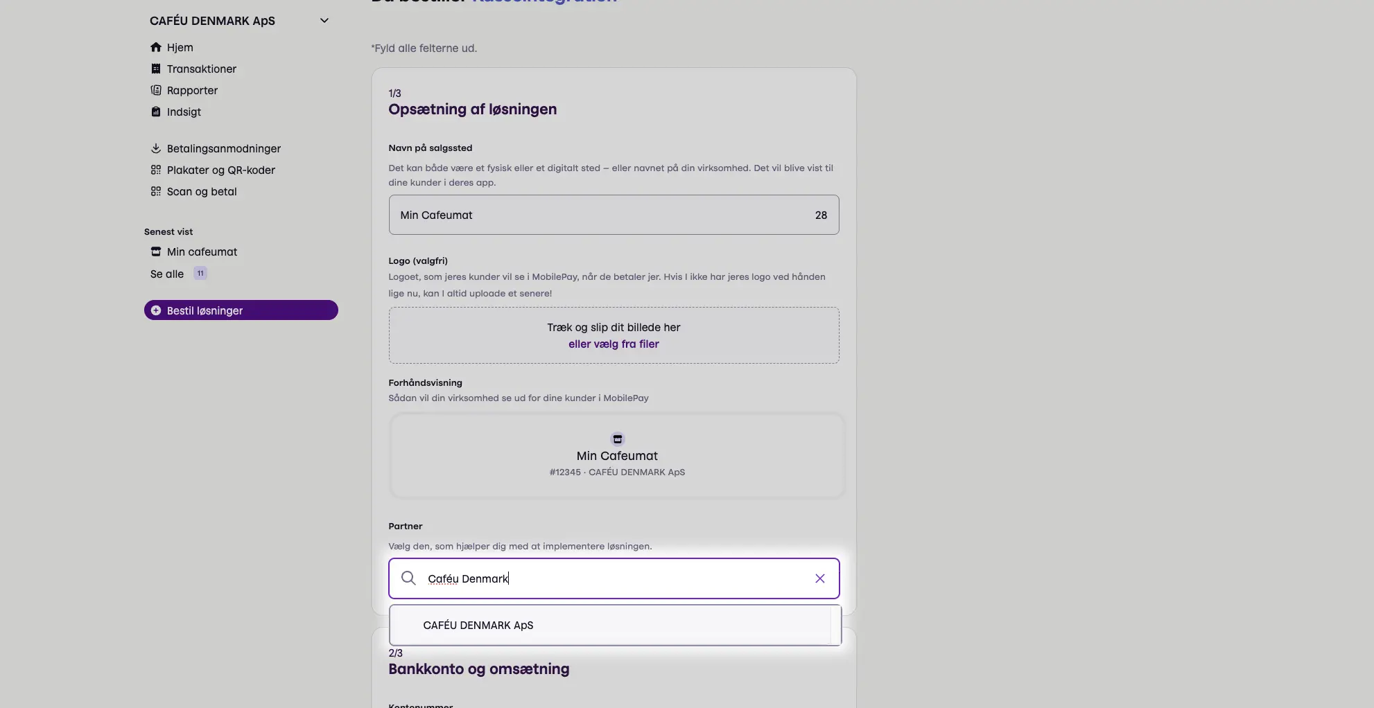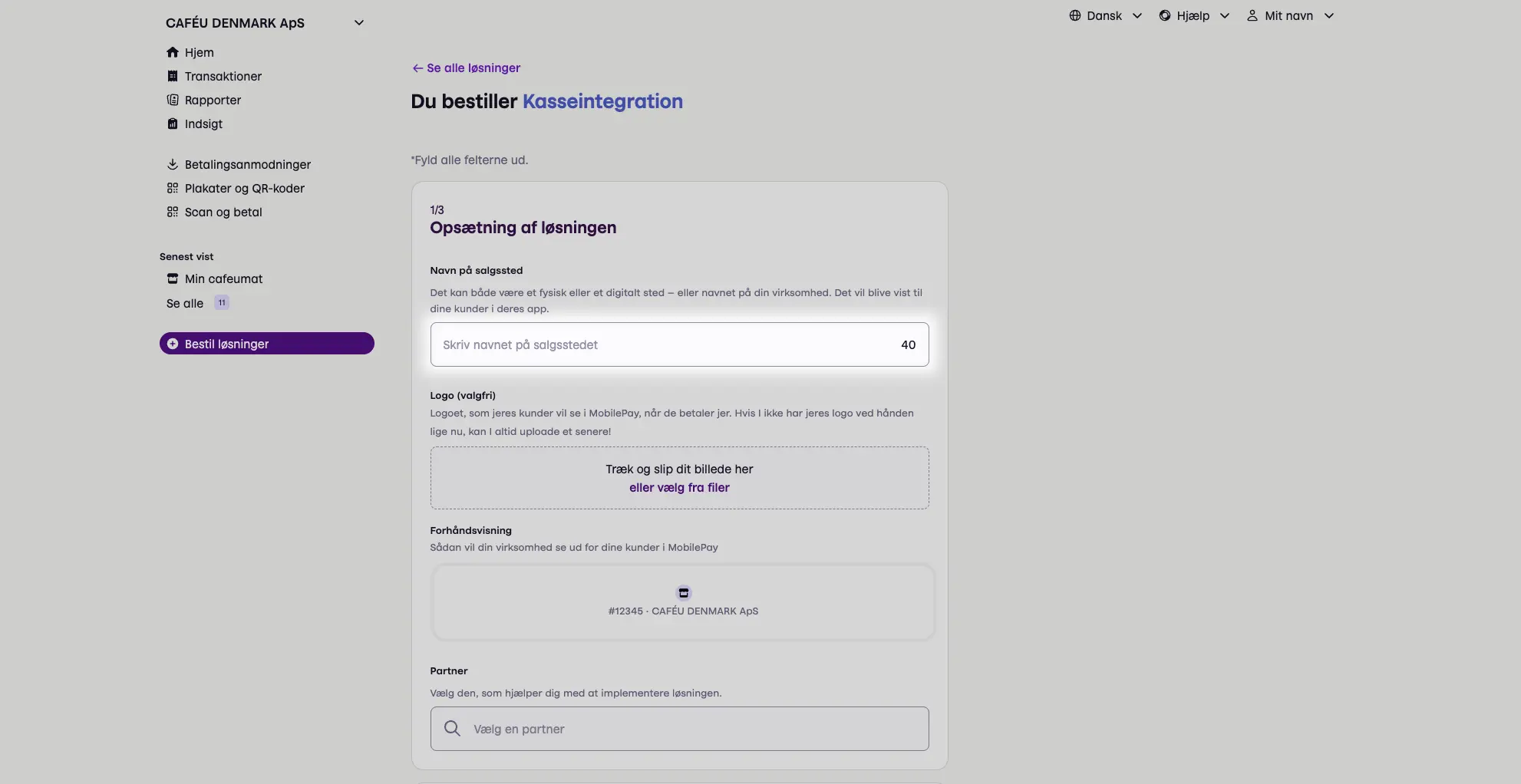 Step 6: Vælg partner "Caféu Denmark ApS"