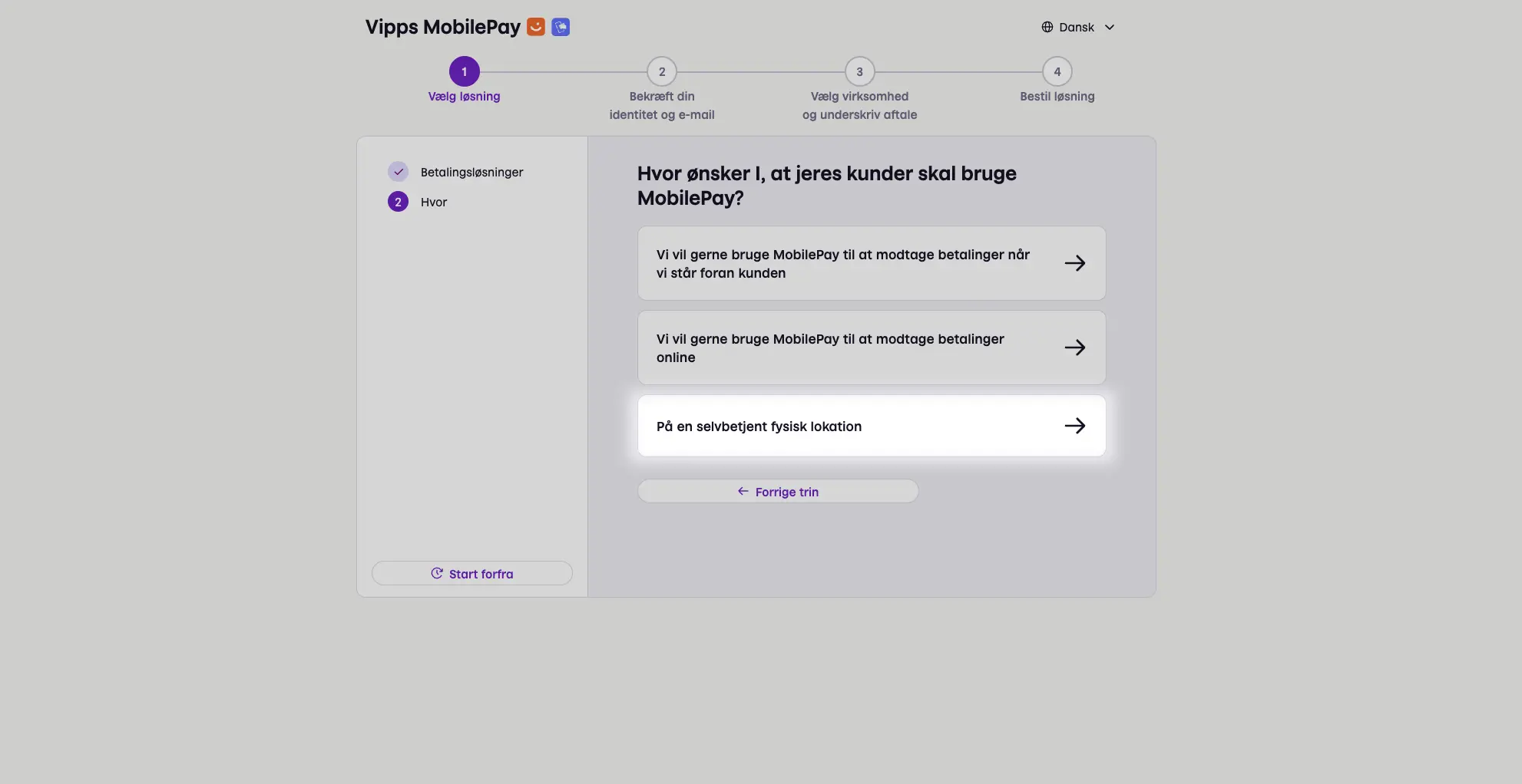 Step 3: Vælg lokation "På en selvbetjent fysisk lokation"